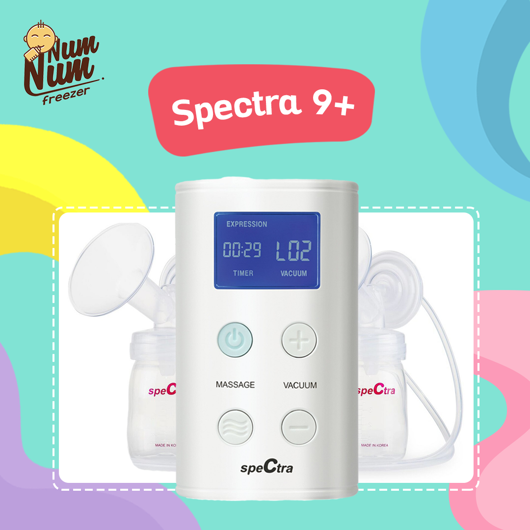 1. Spectra 9+ menggunakan sistem tertutup, jadi ASI yang dihasilkan akan lebih higienis dan dapat menghindari pembentukan mold atau kerak asi pada selang dan motor. 2. Memiliki fase stimulasi (massage) dan fase hisapan (expression). Kombinasi penggunaan dari 2 fase ini bertujuan untuk menghasilkan LDR (Let Down Reflex). 3. Fitur keamanan auto OFF dimana pompa akan mati dengan sendirinya setelah penggunaan selama 30 menit dan rechargeable. 4. Dapat dioperasikan  elektrik atau manual. 5. Dapat dijadikan single dan double pumping untuk menghemat waktu memompa.
